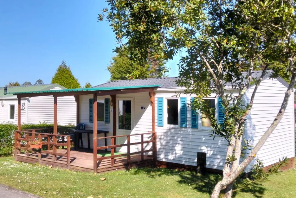 Amplios mobil-homes en parcela individual. Totalmente equipados con porche de madera y mobiliario de jardín.