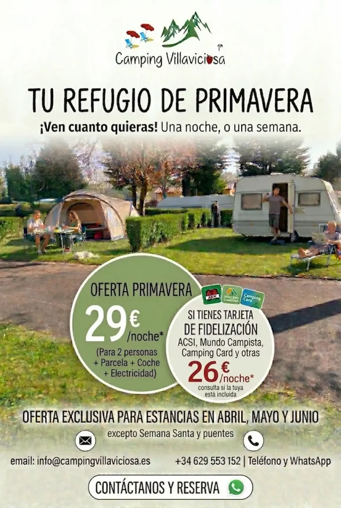 Imagina despertar cada mañana con el fresco aroma del bosque asturiano. Este sueño puede hacerse realidad en el Camping Villaviciosa,