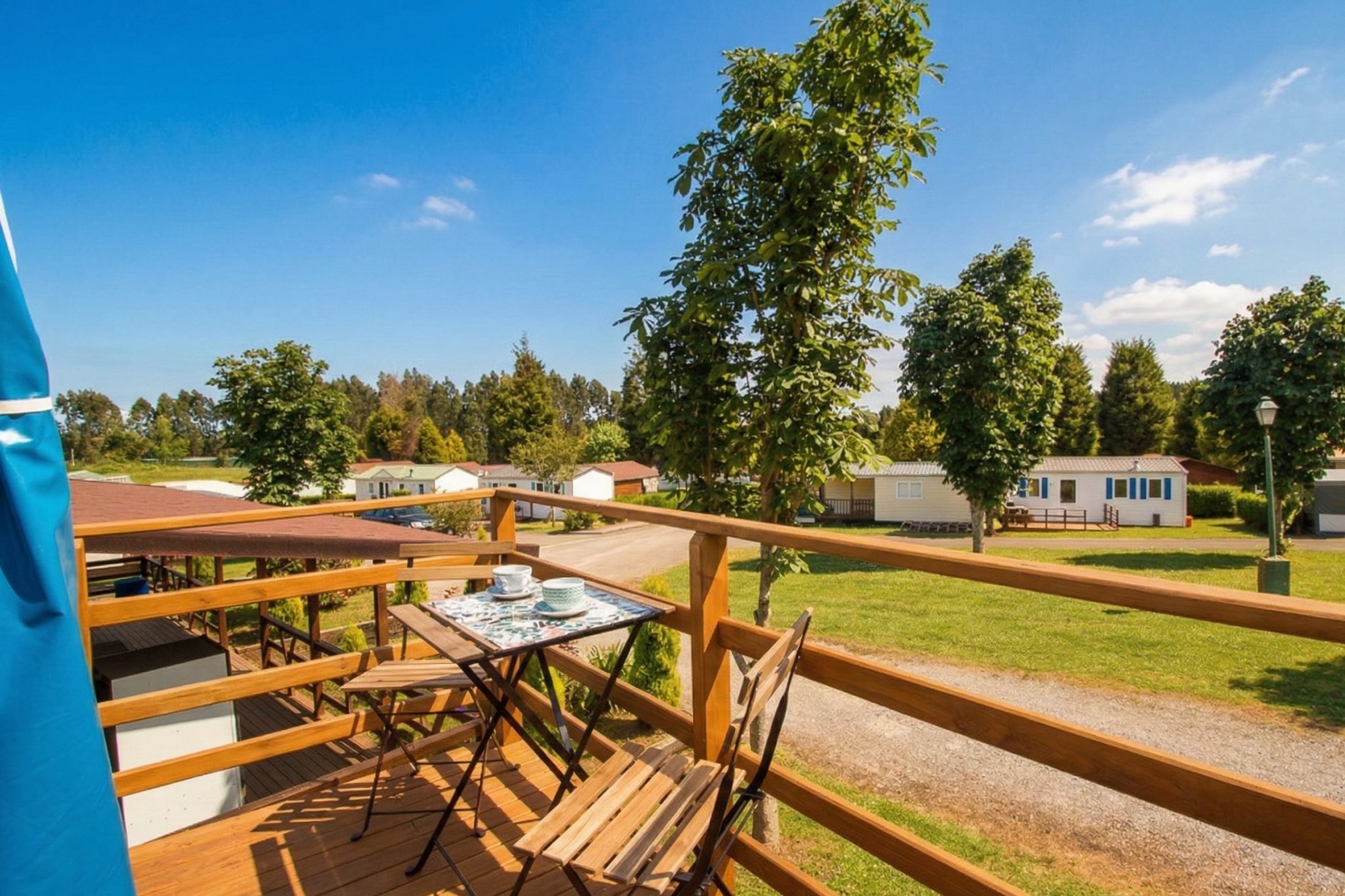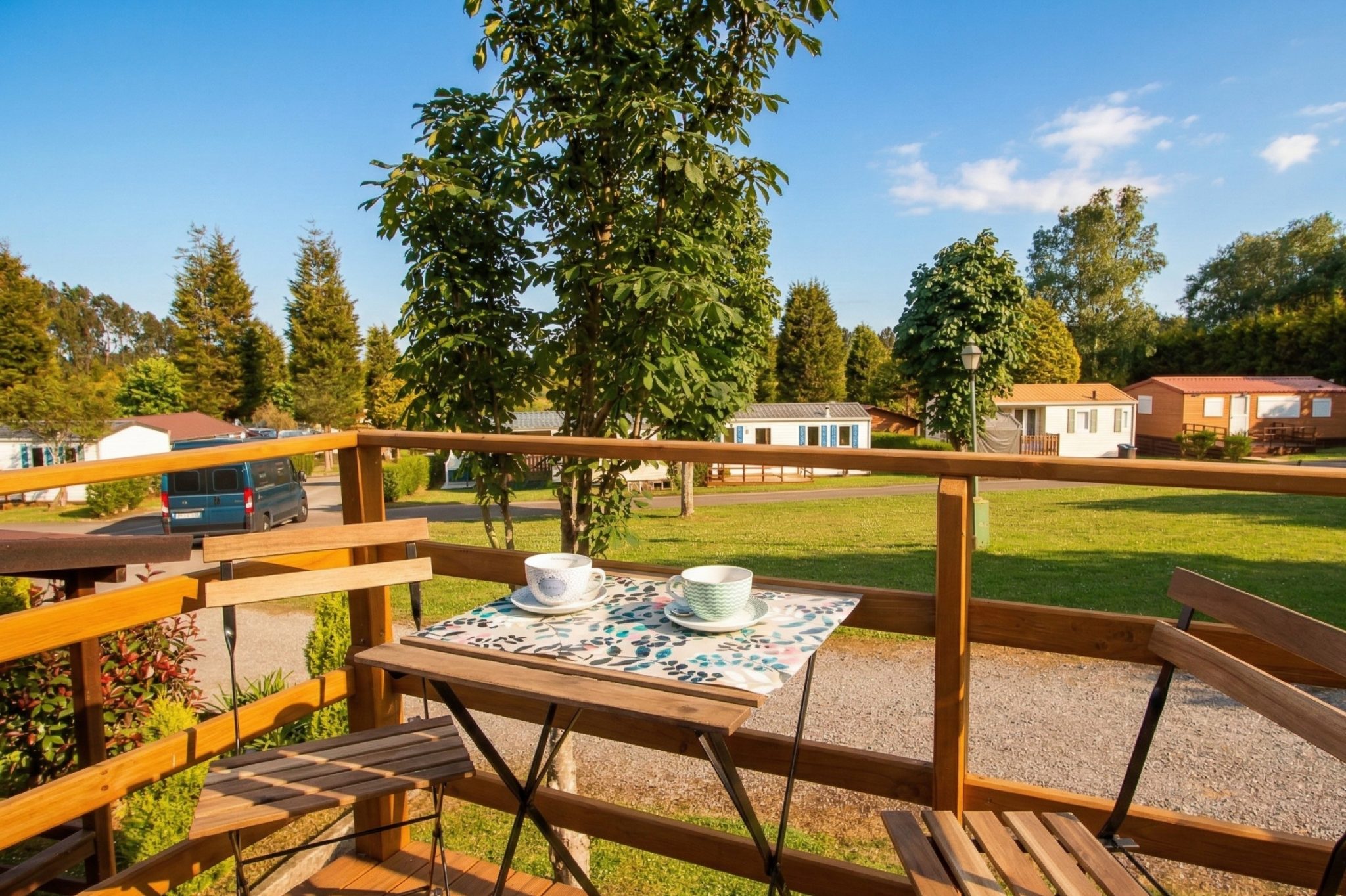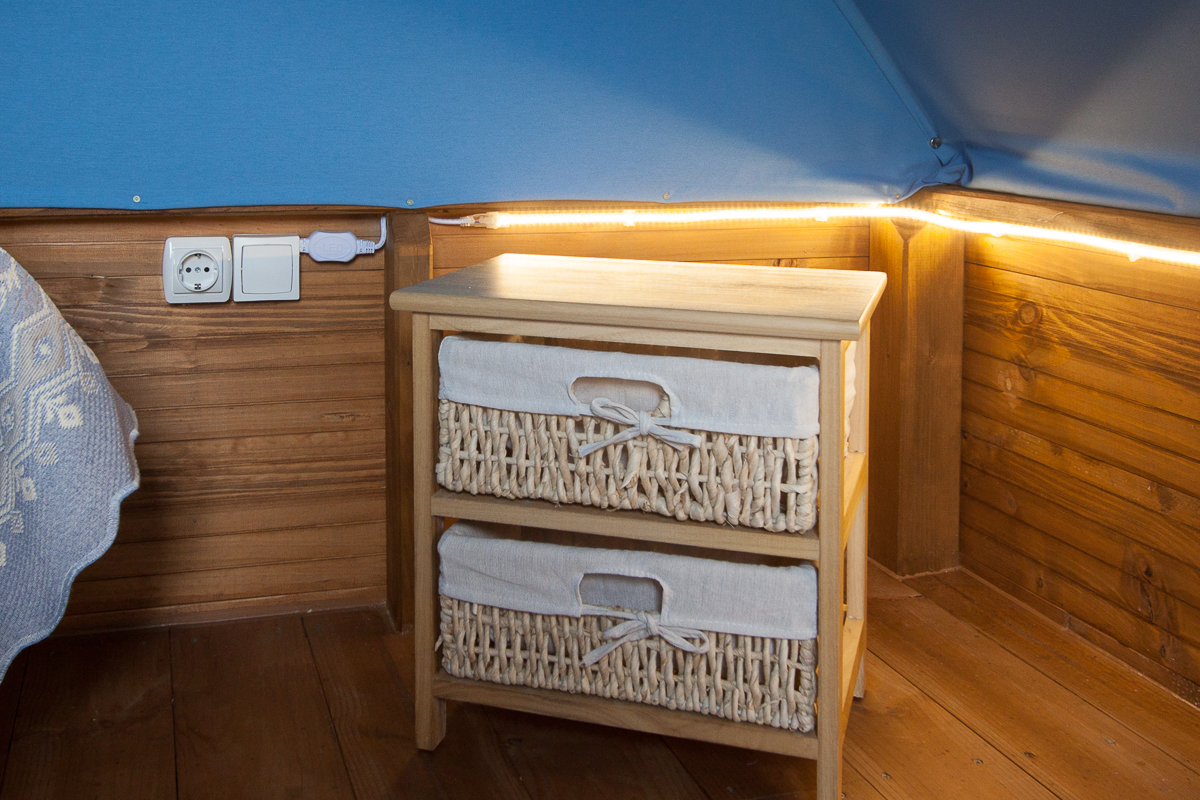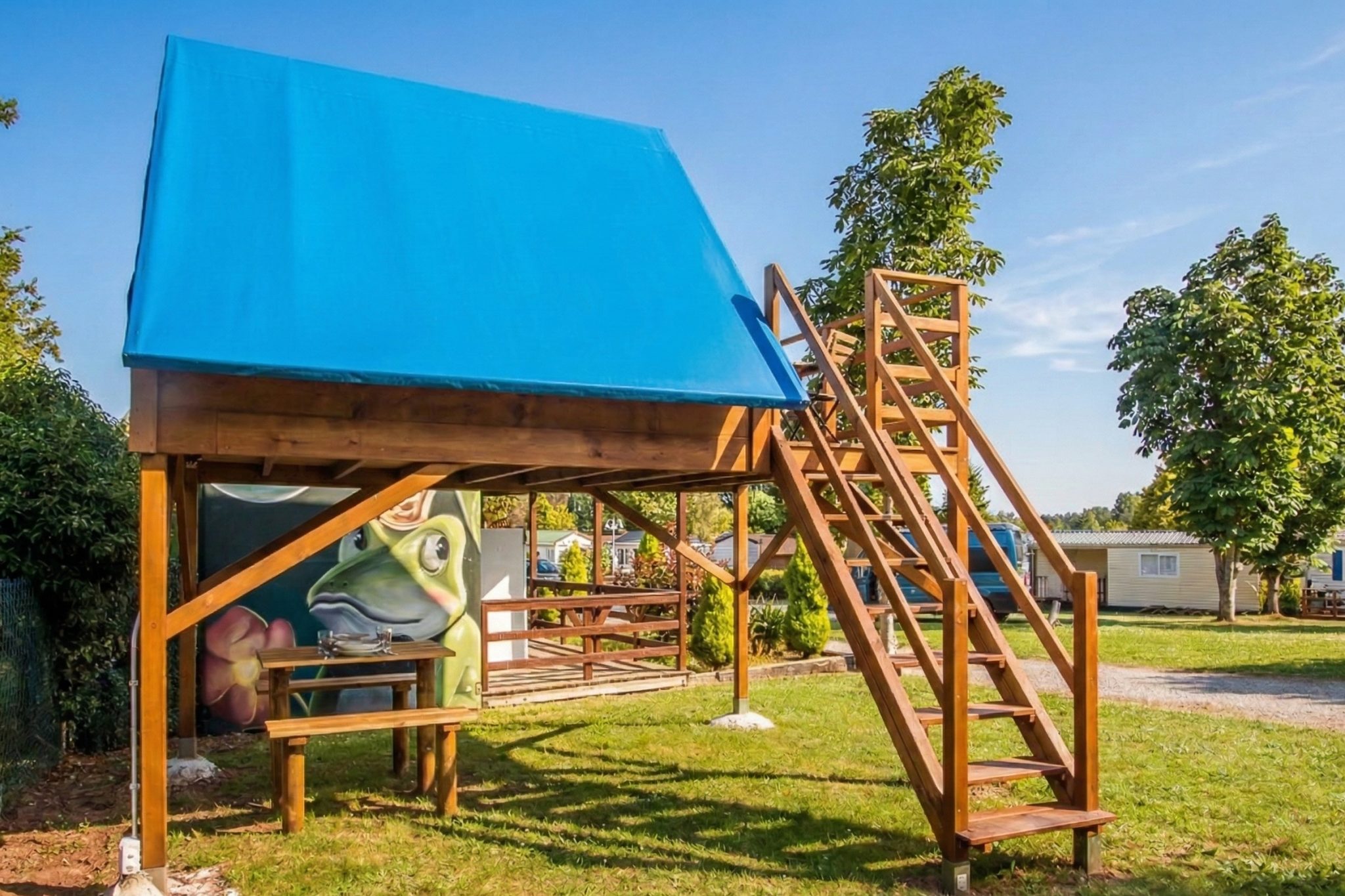 Tiendas elevadas tipo glamping, con cama matrimonial, menaje de cocina y dos terrazas, para que disfrutes del camping en una tienda confortable.