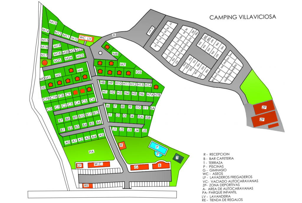 Bloques sanitarios y servicios comunes. Comedor común cubierto, zona para lavar el coche.